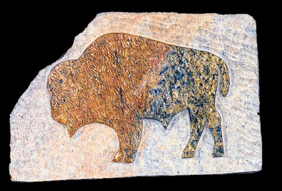 Detailed carvings etched out of a rustic backdrop of stone. Each polished image comes to life with vibrant colors. A new take on a age old art form known as petroglyphs.